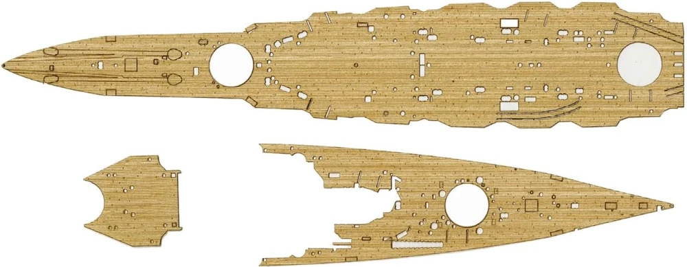 And we must not forget another attraction: the wood deck stickers. These are truly excellent. Since they are pre-cut specifically for this kit, they fit the flight deck parts perfectly, and just by applying them, the realism increases instantly. What deserves special attention is the wood-grain surface finish achieved through laser cutting. The subtle shading and irregular lines create a finish reminiscent of an actual wooden deck, making you stare in admiration. This texture, which cannot be fully expressed through painting, is a true blessing for authentic model fans.